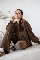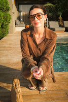 Koszula Gia Brownie to idealny wybór na wszystkie okazje. Jej luźna forma sprawdzi się w zestawie ze spodniami Ruby lub ulubionymi jeansami lub innymi spodniami garniturowymi.