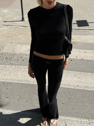 Longsleeve Lulu to definicja wygodnej elegancji w stylu cropped. Czarny, zmiękczony wiskozowy prążek delikatnie otula sylwetkę, gwarantując komfort noszenia przez cały dzień. Jego skrócony krój idealnie podkreśla talię i świetnie pasuje do legginsów Alexa i Belize, tworząc spójny, stylowy zestaw. Na karku znajdziesz dyskretną metkę z logo, która dodaje subtelnego charakteru. Lulu to doskonały wybór na każdą okazję — od aktywnego dnia po wieczorne wyjścia, zawsze z gwarancją luzu i szyku.
