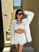 Koszula Lotus perfekcyjnie uzupełni Twoją letnią szafę i pozwoli stworzyć nieskończenie wiele stylizacji. Założysz ją do szortów Ellie w wersji plażowej, do jeansów, narzucisz na bikini. Tworzy zestaw z topem Noly i Amy.
