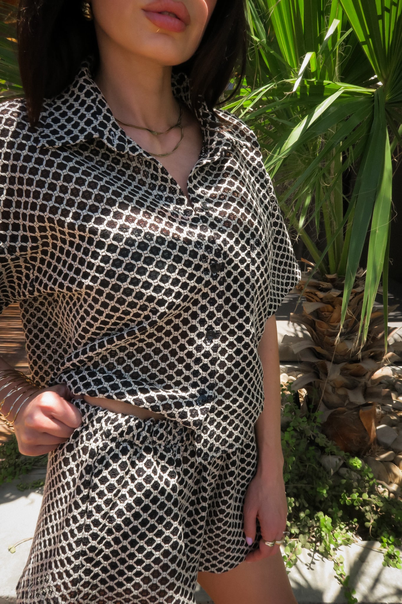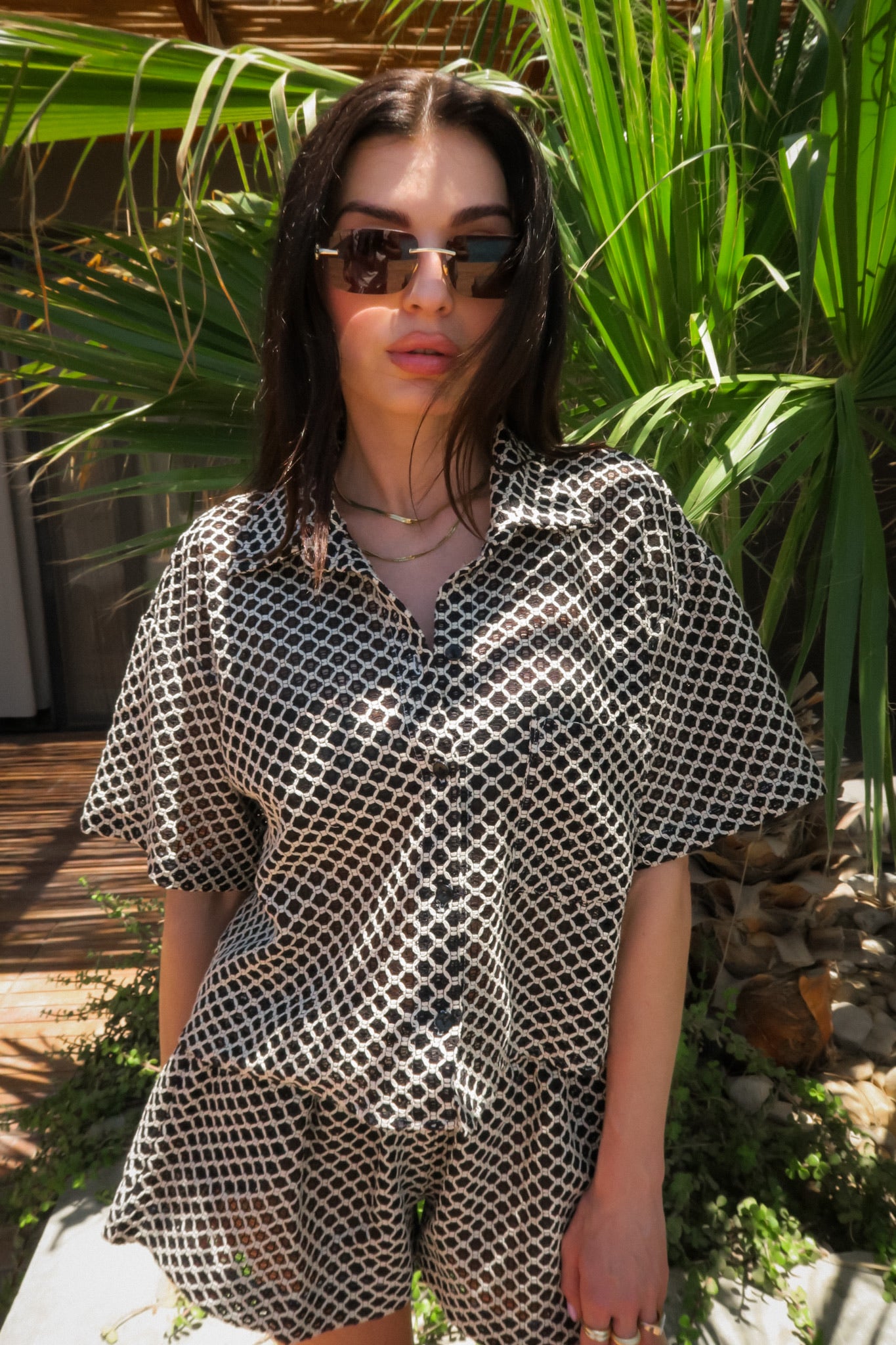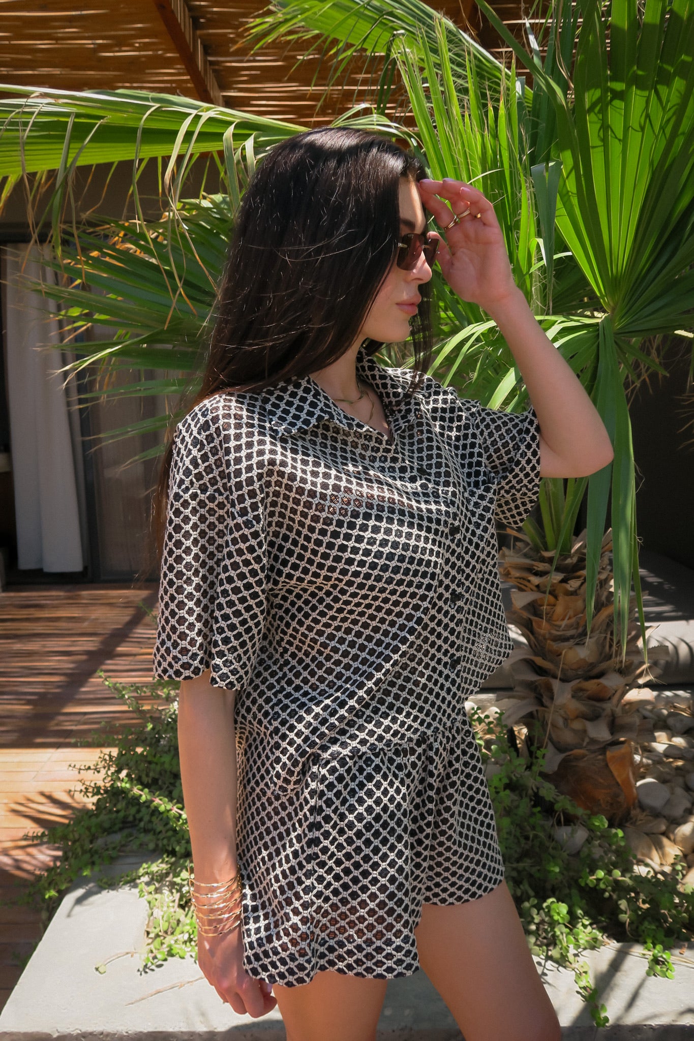 Koszula Kaia Black to esencja letniego luzu w nowoczesnym wydaniu. W całości wykonana z przewiewnej, szydełkowej bawełny, delikatnie odsłania ciało, zachowując jednocześnie klasę i wyczucie stylu. Idealna do szortów Moris lub narzucona na strój kąpielowy — zabierze Cię z miasta prosto na wakacje.