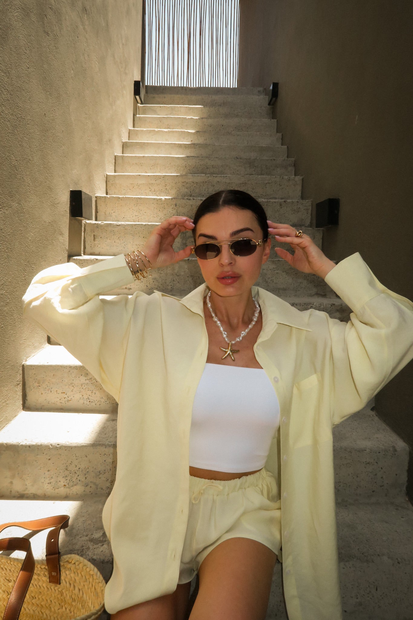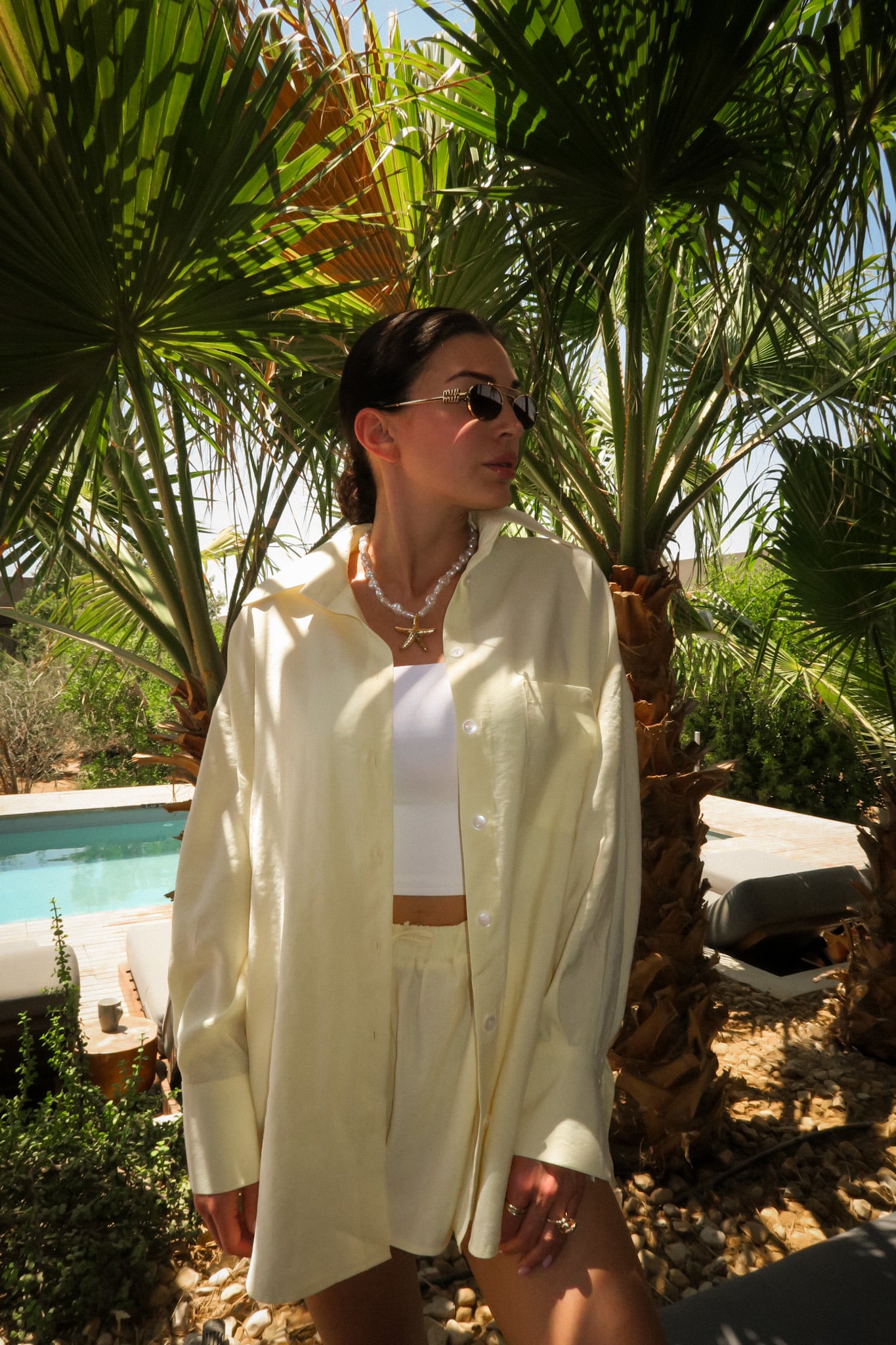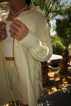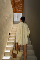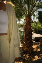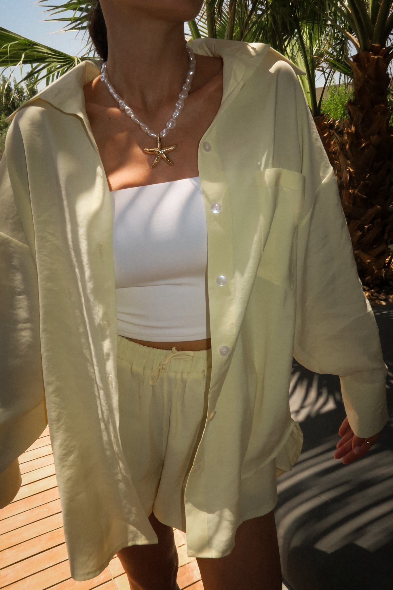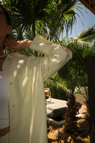 Koszula Lotus to model typu one size o klasycznym kroju z nutą oversize’u – swobodna, lekko opadająca na ramionach, z dłuższym tyłem i delikatnie zaokrąglonym dołem. Uszyta z lekkiej, miękkiej tkaniny w najmodniejszym odcieniu sezonu – butter yellow. Zapinana na drobne guziki, z mankietami i kołnierzykiem, sprawdza się zarówno narzucona na top, jak i jako samodzielna baza stylizacji. Tworzy idealny letni set z szortami Siena – cool, comfy, effortless.
