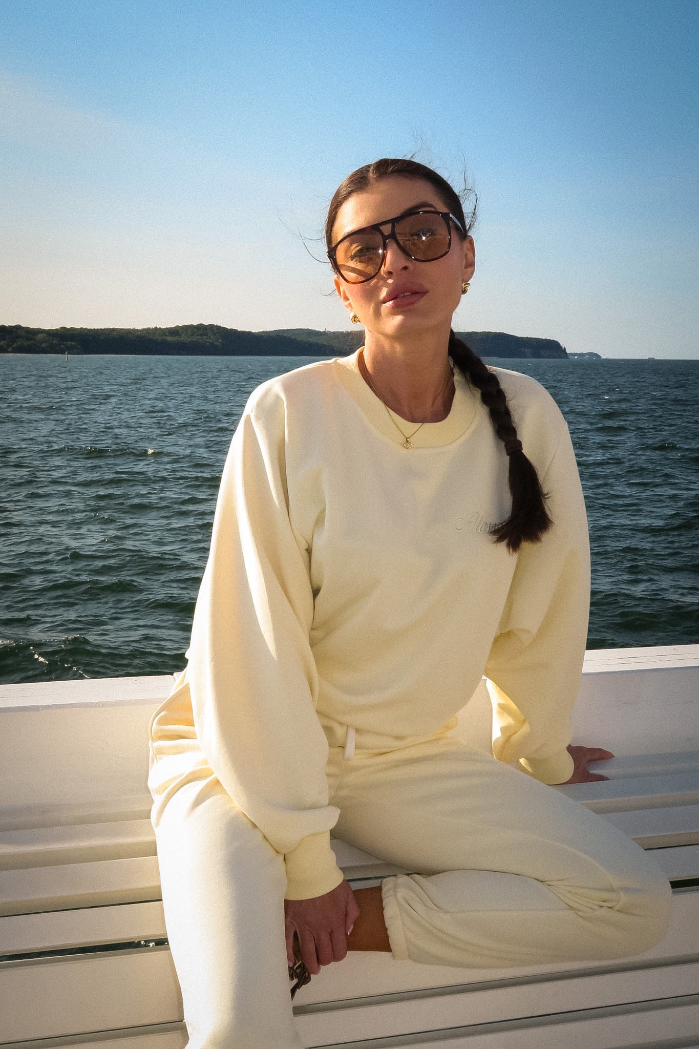 Spodnie Venice Butter Yellow to idealny element codziennych stylizacji – lekkie, miękkie i maksymalnie wygodne. Wykonane z bawełnianej dzianiny pętelkowej o gramaturze 280 g, dodatkowo zmiękczonej, zapewniają komfort noszenia i swobodę ruchów. Zwężane nogawki subtelnie układają się przy kostkach, dzięki czemu spodnie mają nowoczesny, zgrabny krój. Tworzą idealny duet z bluzą Lyon Butter Yellow, pozwalając Ci cieszyć się kompletnym, stylowym i „cool & comfy” setem.