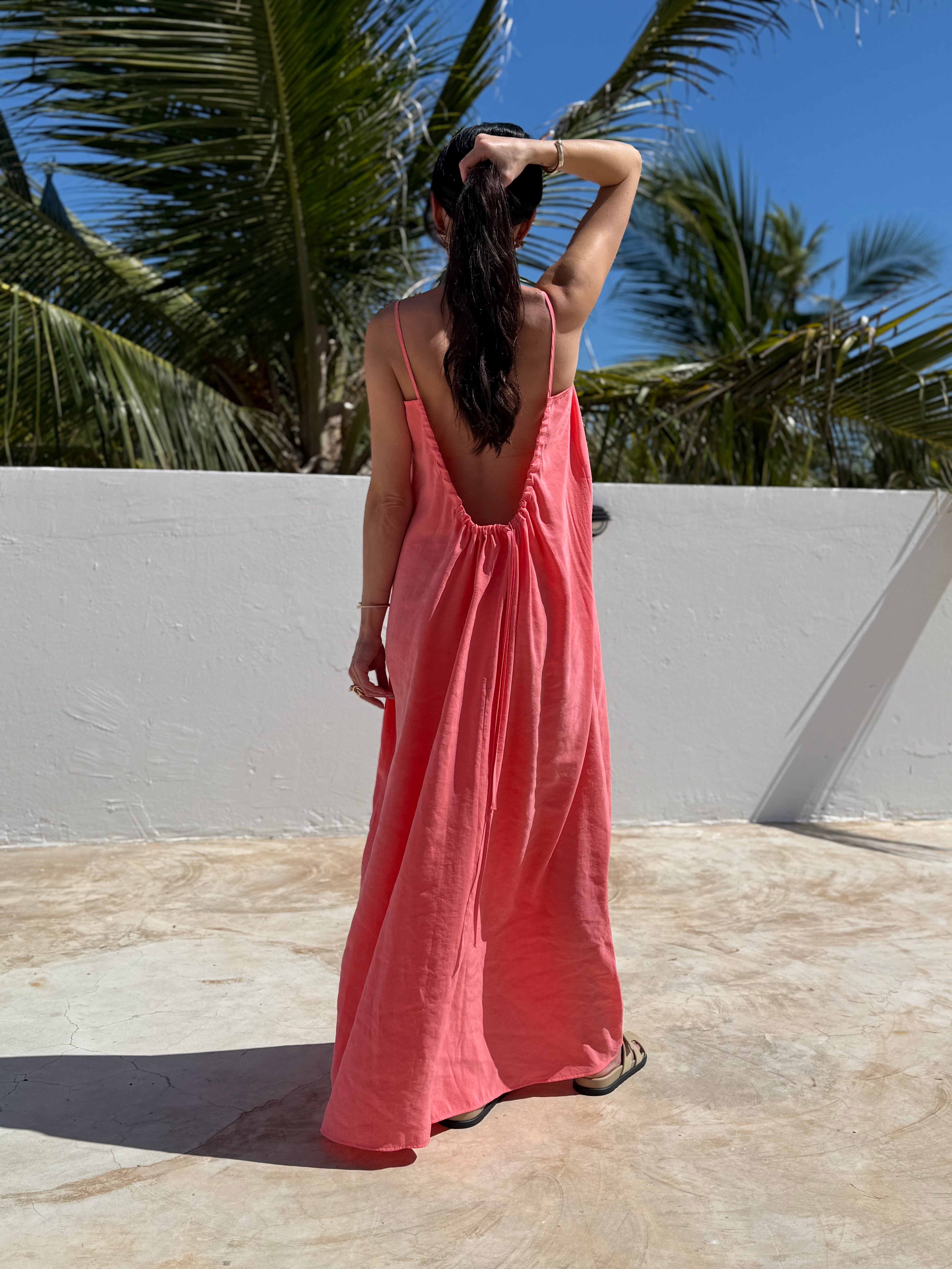 Sukienka Luca w odcieniu soczystego arbuza od Alessa the Label to idealna propozycja na lato – lekka, kobieca i niesamowicie stylowa. Jej swobodny, oversize’owy fason pięknie układa się na sylwetce, zapewniając komfort nawet w największe upały. Cienkie ramiączka i głęboko wycięte plecy dodają całości zmysłowego charakteru, a intensywny kolor przyciąga spojrzenia i podkreśla wakacyjną opaleniznę. To sukienka stworzona z myślą o spacerach po plaży, zachodach słońca i letnich przygodach – wystarczy dodać klapki i ulubione okulary przeciwsłoneczne, by stworzyć perfekcyjny look.