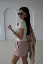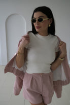 Szorty Porto Pink to must-have na wiosenno-letni sezon. Uszyte z lekkiego, cienkiego denimu, zapewniają wygodę noszenia i idealnie układają się na sylwetce. Wysoki stan i subtelne zakładki z przodu pięknie podkreślają talię, a pastelowy, pudrowy róż dodaje im świeżości i dziewczęcego charakteru.
