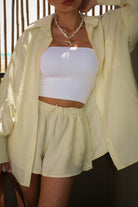 Szorty Siena to lekki model z elastyczną talią i delikatnym marszczeniem, które dopasowuje się do sylwetki bez ucisku. Uszyte z tej samej miękkiej, naturalnie układającej się tkaniny co koszula Lotus – razem tworzą idealny letni set. Butter yellow dodaje świeżości i subtelnego koloru, który pasuje do bieli, złota, a nawet mocnych akcentów. Minimalizm z twistem – wygodne jak domowe, stylowe jak wakacyjny must-have