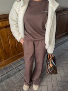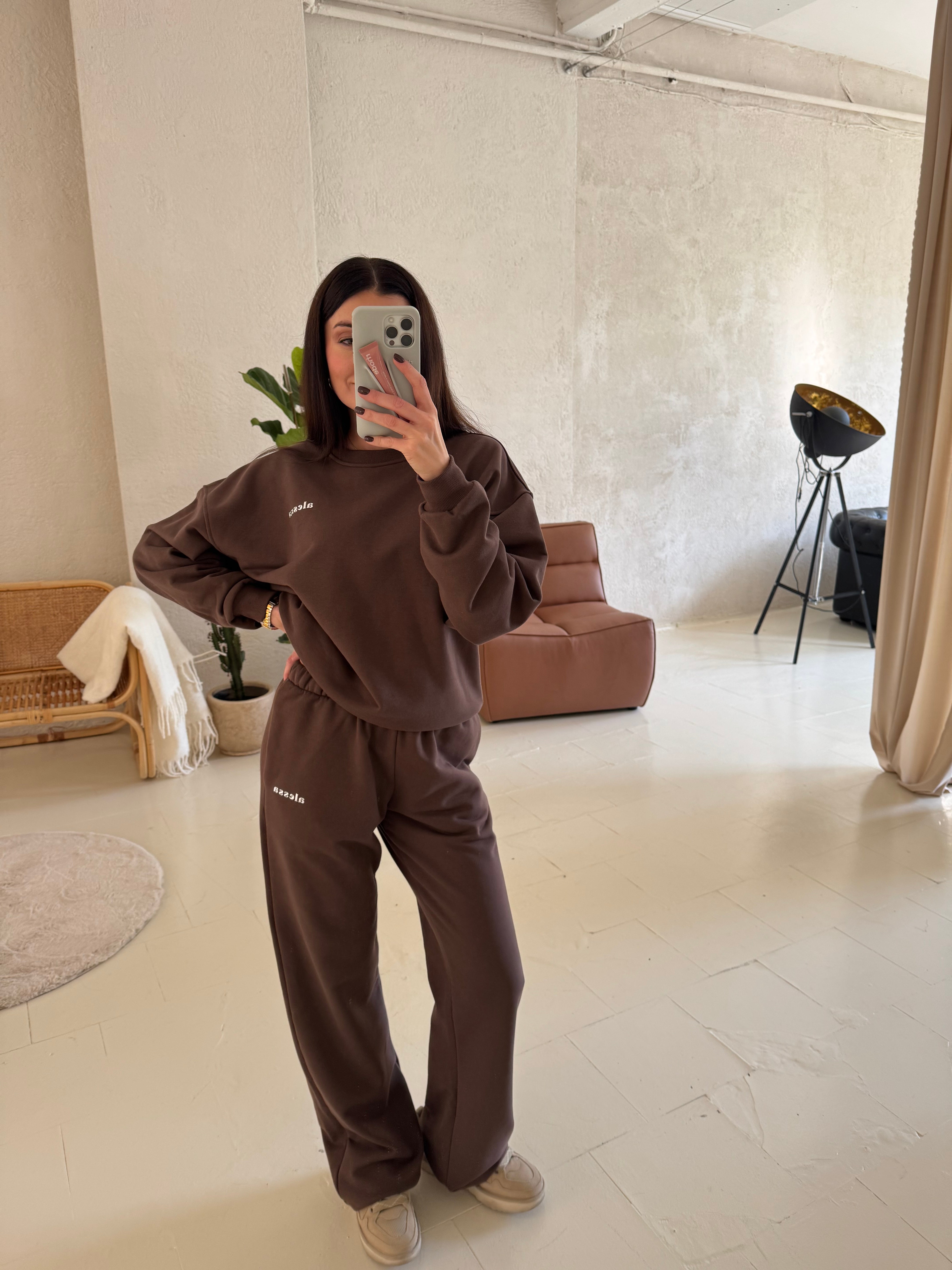 Ich pralinkowy odcień idealnie komponuje się z bluzami Madison i Mercer, tworząc zestaw w duchu cool & comfy.