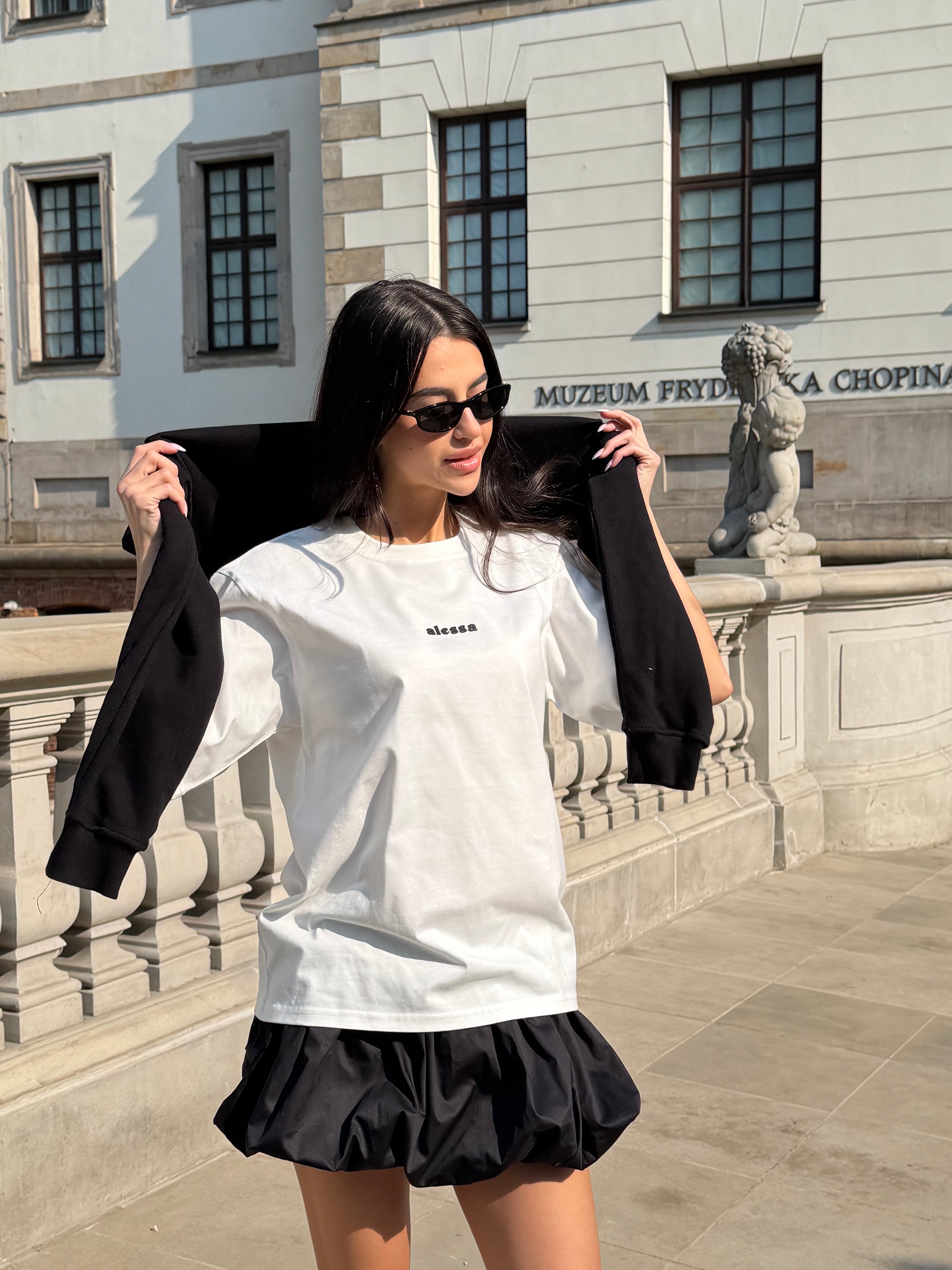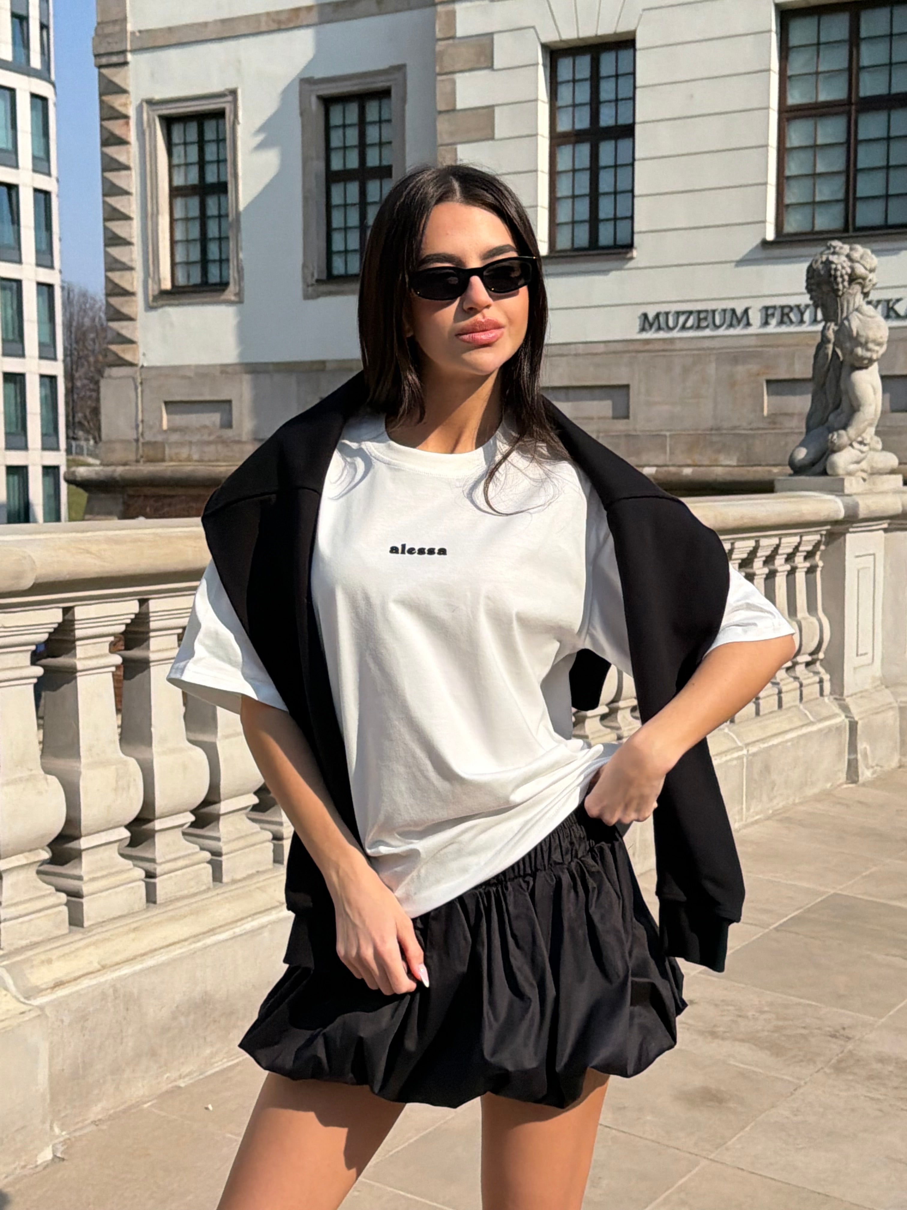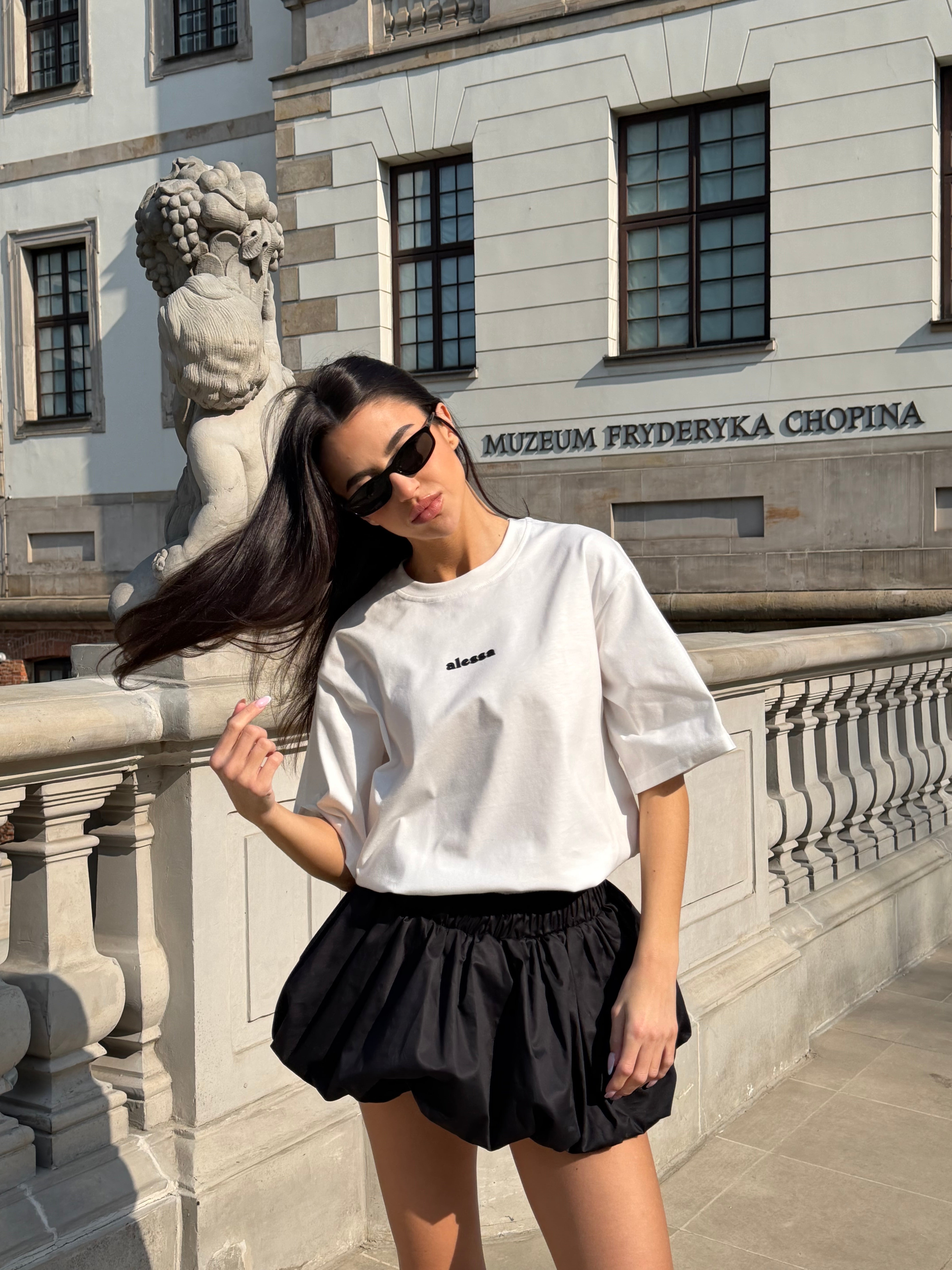 Prosty, ponadczasowy fason sprawia, że T-shirt Lupo łatwo łączyć z różnymi elementami garderoby. Szczególnie dobrze wygląda w zestawieniu ze spódniczkami Balloon, tworząc lekki, miejski look w duchu Alessa.