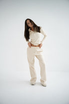 Perfectly fitted trousers with a straight leg, a comfortable elastic waistband, and practical pockets make this set as stylish as it is functional. The subtle vanilla color is an absolute hit of the season – elegant, versatile, and exceptionally flattering.