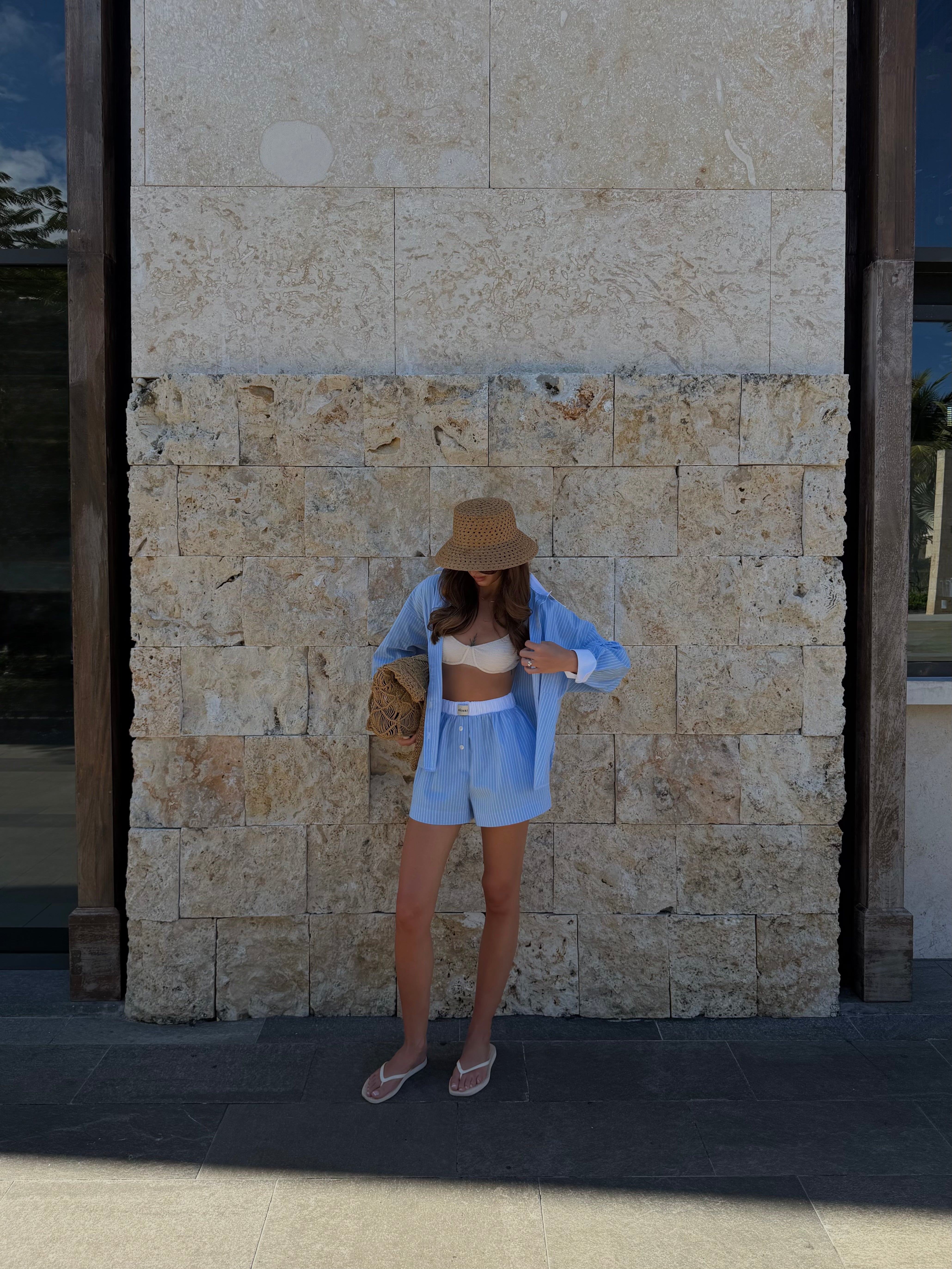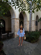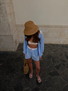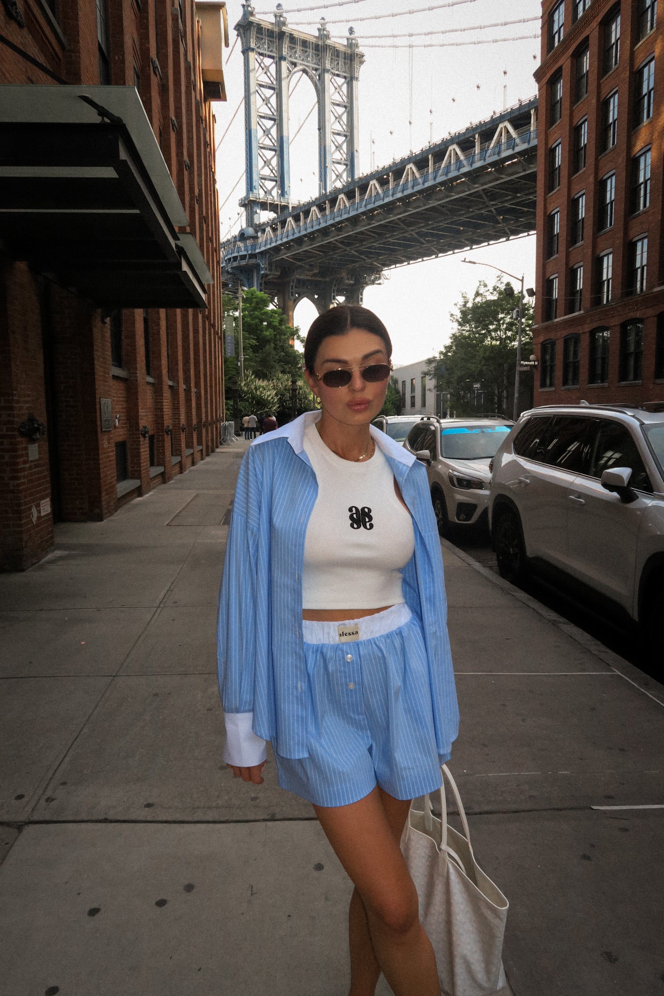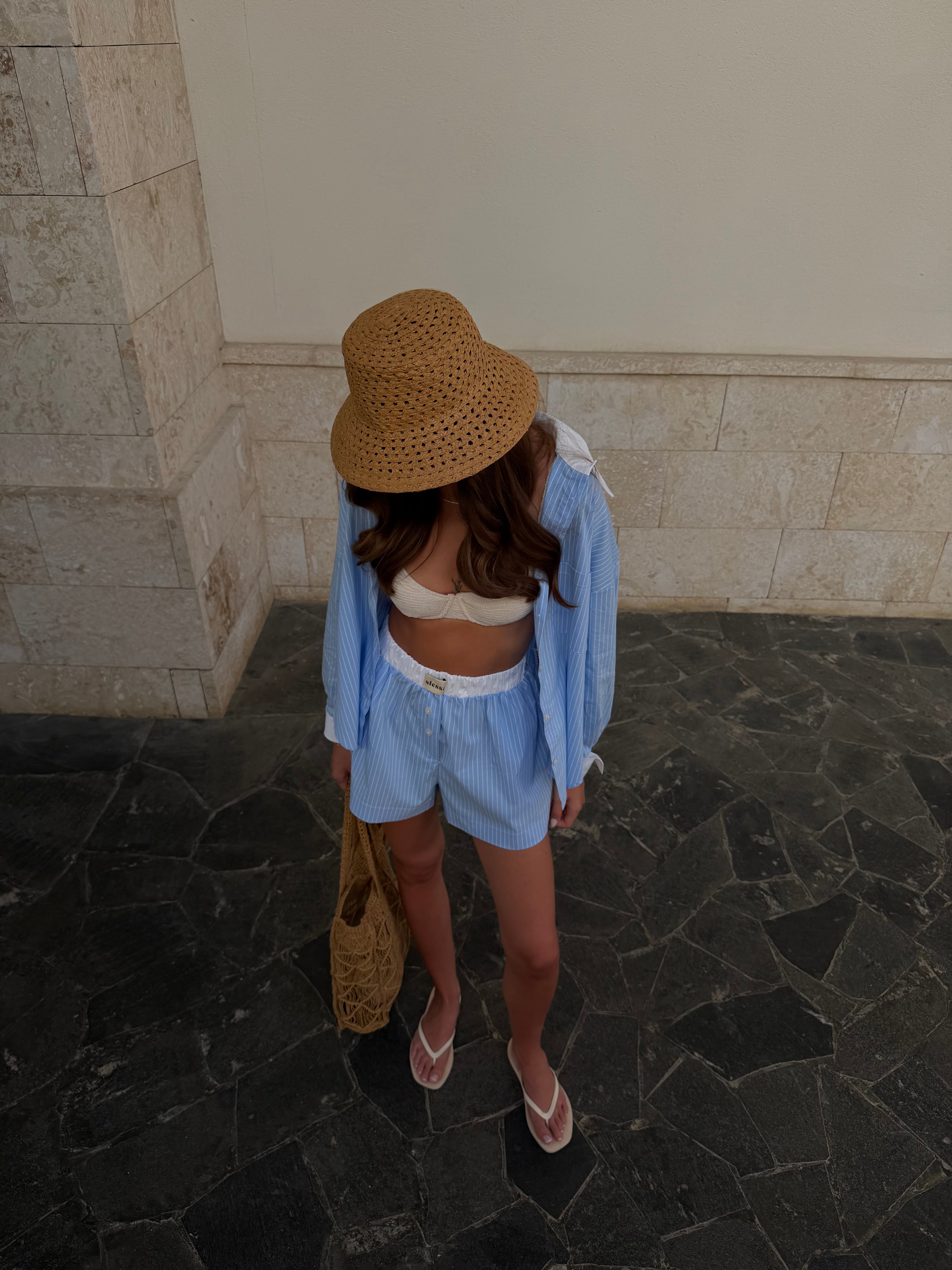 Koszula NEW YORK Blue to ukłon w stronę klasyki z nowojorskim twistem. Błękitne paski i oversize’owy fason nadają jej luzu, a biały kontrastowy kołnierz i mankiety to modowy smaczek. Latem tworzy komplet idealny z szortami, ale sprawdzi się też przez cały rok – z jeansami albo legginsami i topem Luna w stylu pilates princess. Jeden zakup, wiele możliwości.