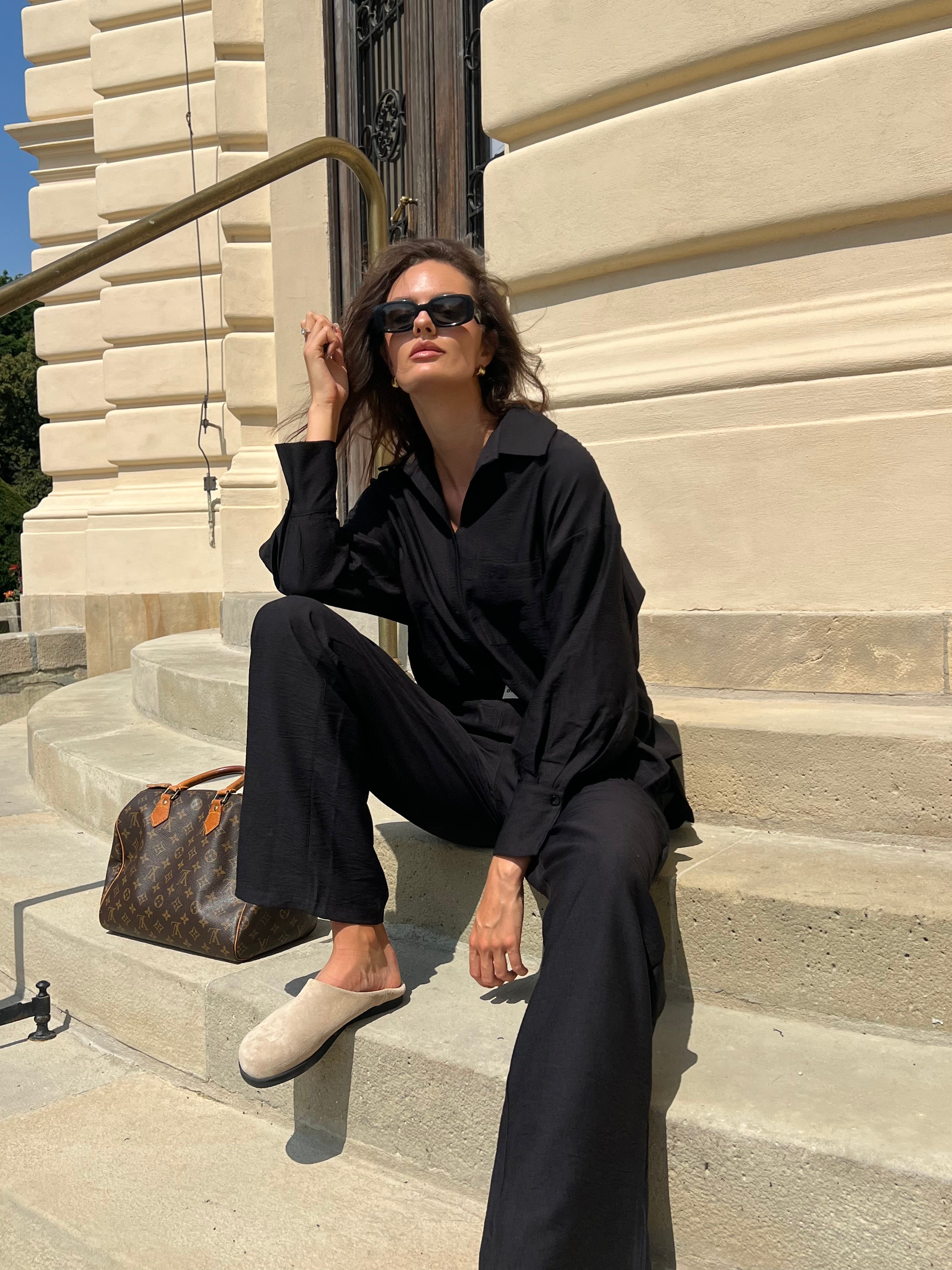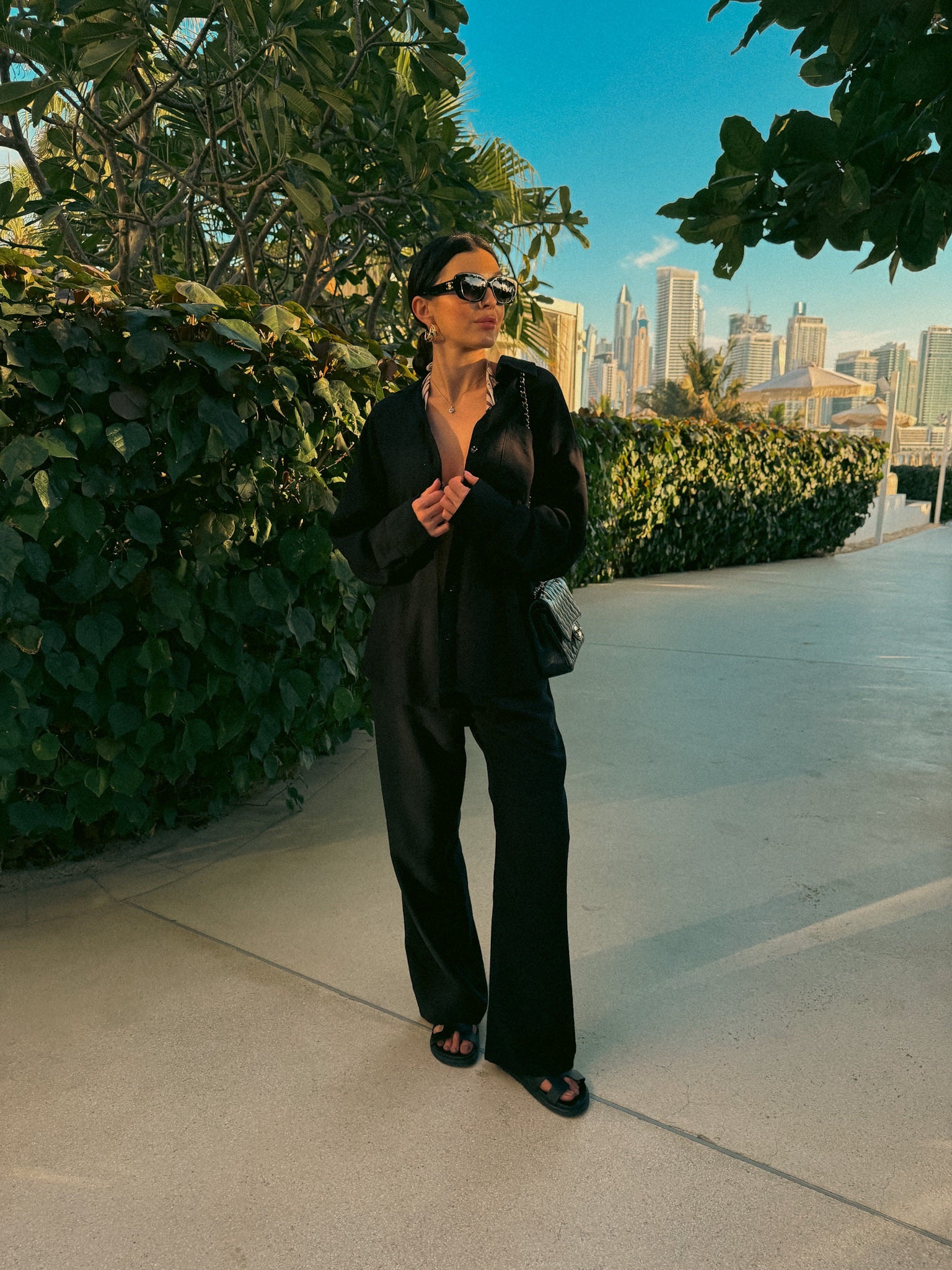Uszyliśmy ją z delikatnej wiskozy, która ma lekko “pognieciona” fakturę więc nie wymaga dokładnego prasowania i możesz ją założyć od razu po wyjęciu z walizki!