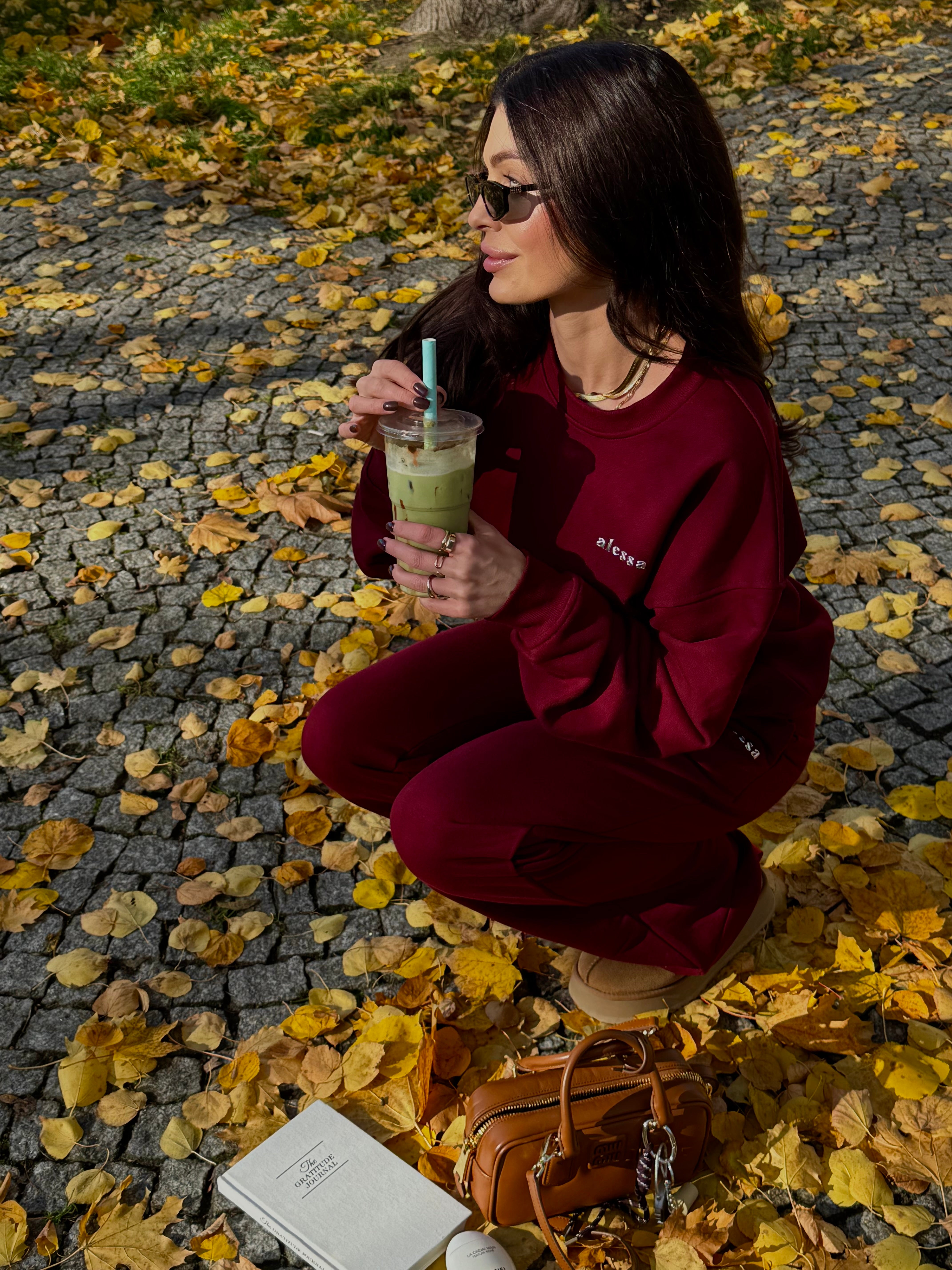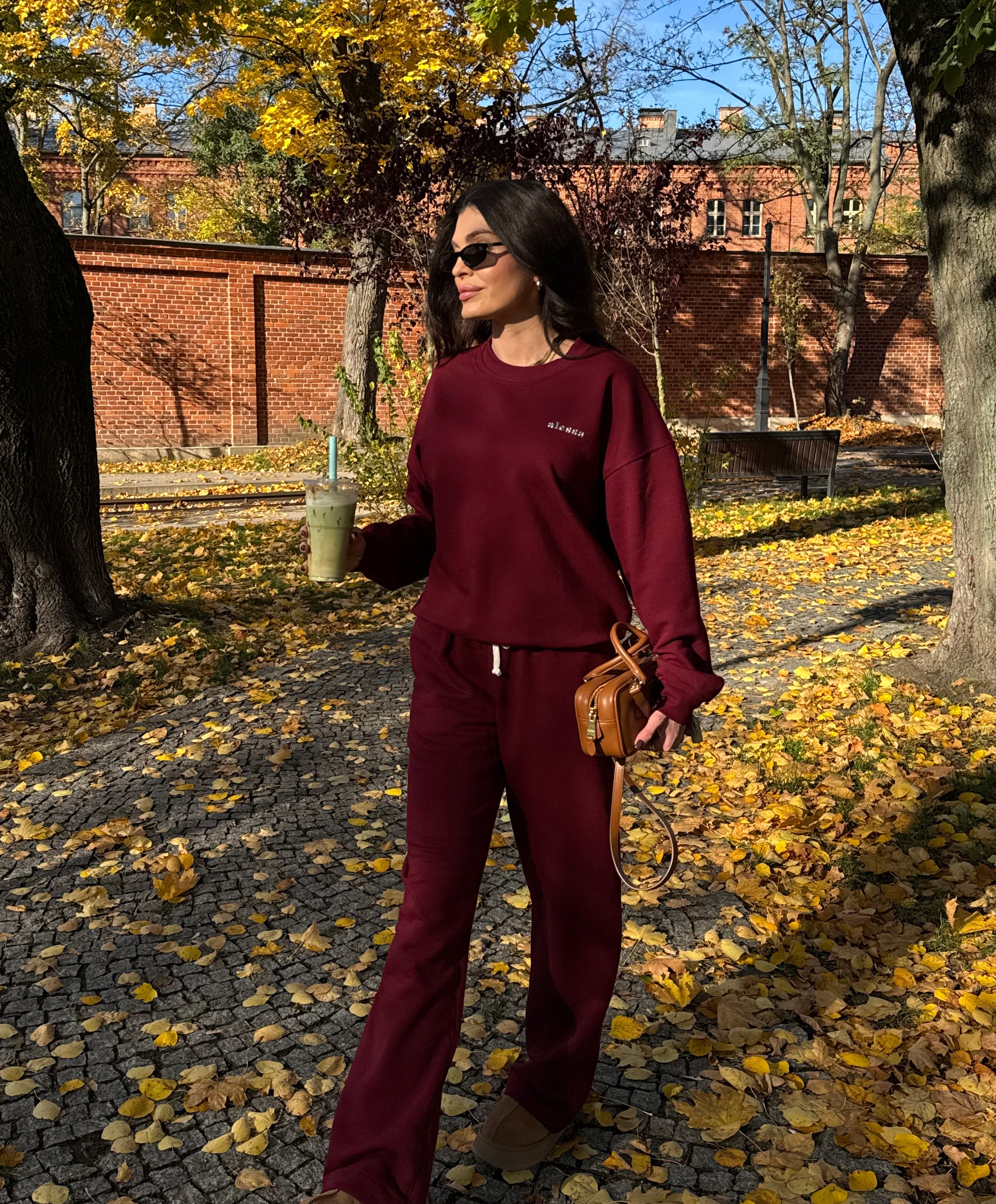 Bluza Madison Crewneck w odcieniu Burgundy to definicja elevated basics - miękka, idealnie skrojona i tak wygodna, że trudno ją zdjąć. Powstała z tej samej jakościowej bawełny pętelkowej, co spodnie Lex i Noho, wyszmerglowanej od środka, by dawać efekt ultramiękkiego otulenia skóry.
