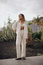 Spodnie Ruby idealnie pasują do koszuli Lotus i topu Ruby w tym samym princie.