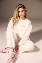 Przód bluzy ozdobiony wyhaftowanym logo w kolorze zgaszonego różu.